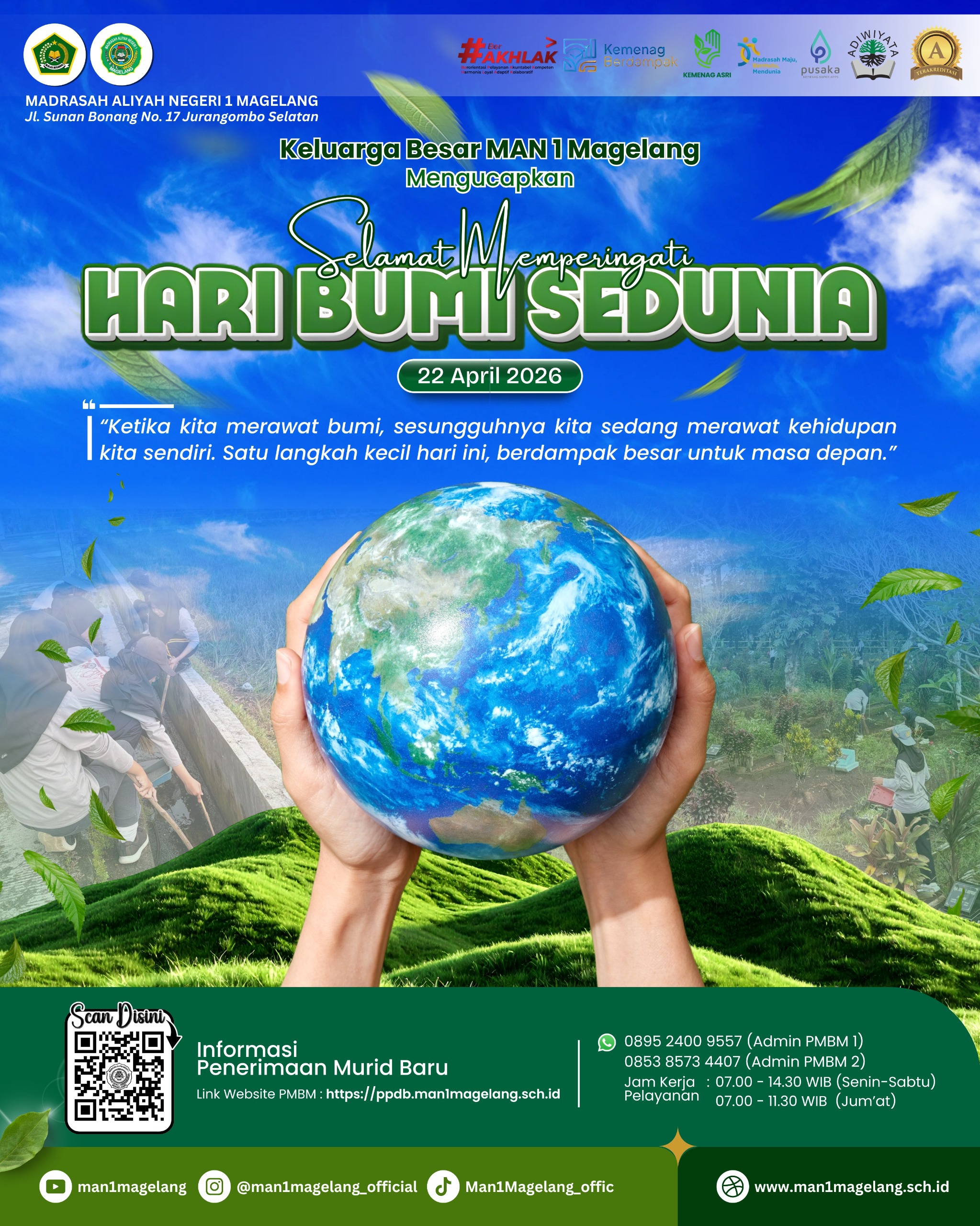 Memperingati Hari Bumi 22 April 2026, MAN 1 Magelang melangkah ke Makam Karet Utara untuk bersinergi dengan alam. Lewat sapu dan cangkul, saluran air dibersihkan dan area makam dirapikan.